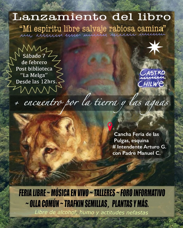 «LANZAMIENTO DEL LIBRO «Mi espiritu libre salvaje rabiosa camina» en memoria de la weichabe Bau + ENCUENTRO POR LA TIERRA Y LAS AGUAS.