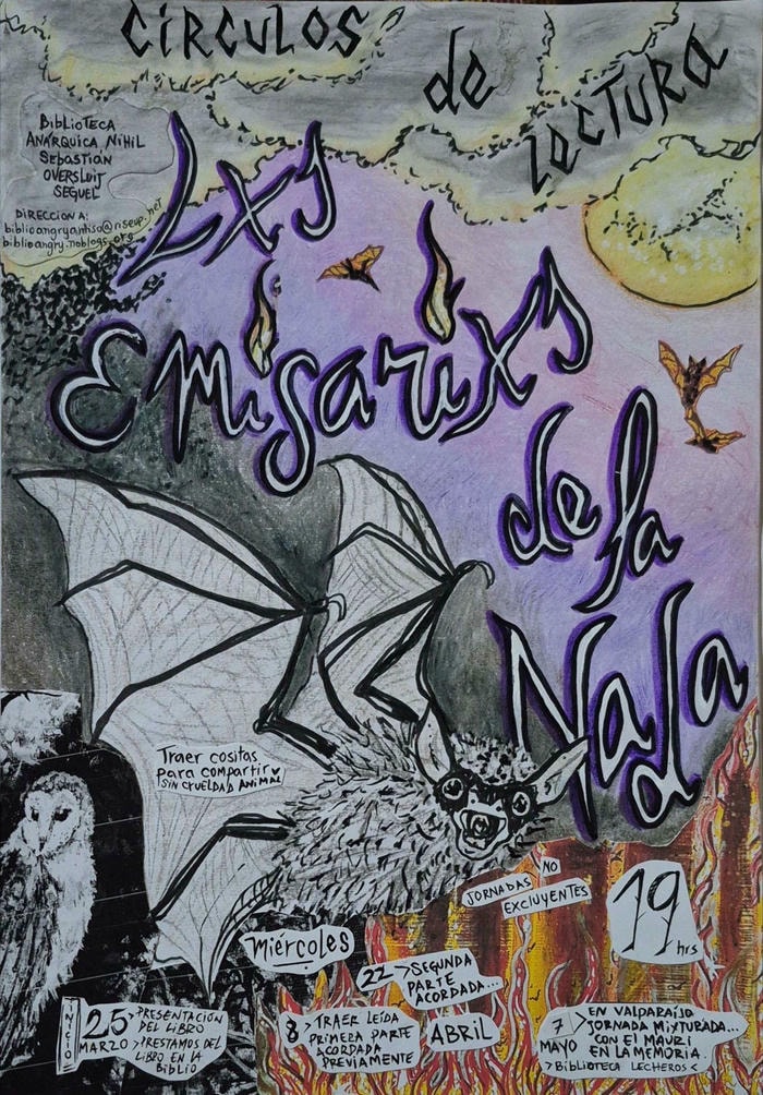 Este círculo ha decidido confluir entorno al libro «Lxs emisarixs de la nada», editado por primera vez en noviembre del 2007 en la península ibérica y que rescata del olvido un cúmulo de experiencias, reflexiones