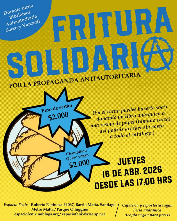 Santiago: Fritura Solidaria por la propaganda antiautoritaria – 16 abril