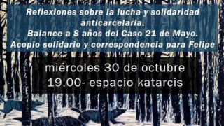 Santiago: Jornada de almuerzo solidario para Tomás preso subversivo – 3 noviembre