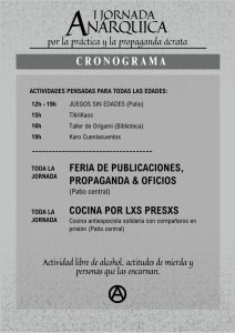 Que la propaganda ácrata se extienda en forma de libros, gráficas, música, y reflexiones para fortalecer la práctica.