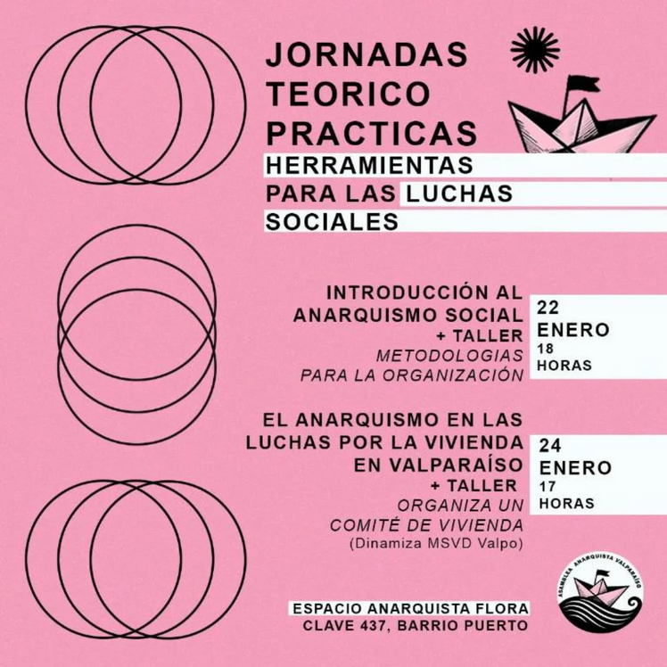 Les dejamos cordialmente invitades a las Jornadas Teórico Prácticas: Herramientas para las luchas sociales que se estarán realizando en el @flora.espacio.anarquista.